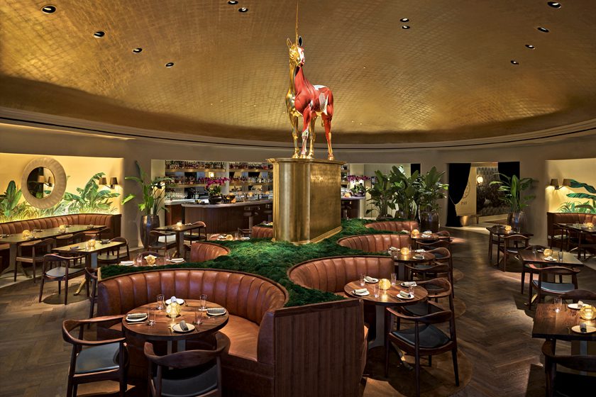 In Miami wiederum stärken sich Star-DJs wie David Guetta oder Calvin Harris vor ihren Auftritten bevorzugt im neuen Komodo (Bild rechts) von Dave Grutman, der mit dem LIV auch den beliebtesten Club der Stadt führt. Mit Vorliebe trifft sich die Szene auch im supercoolen Hotel Faena und huscht über die diskrete Treppe in das Pao (Bild unten): Mitten im Restaurant steht ein riesiges Einhorn von Kunst-Superstar Damien Hirst – und die Küche arbeitet mit Karashi-Senf, Koshihikari-Reis, Binchotan-Grill …