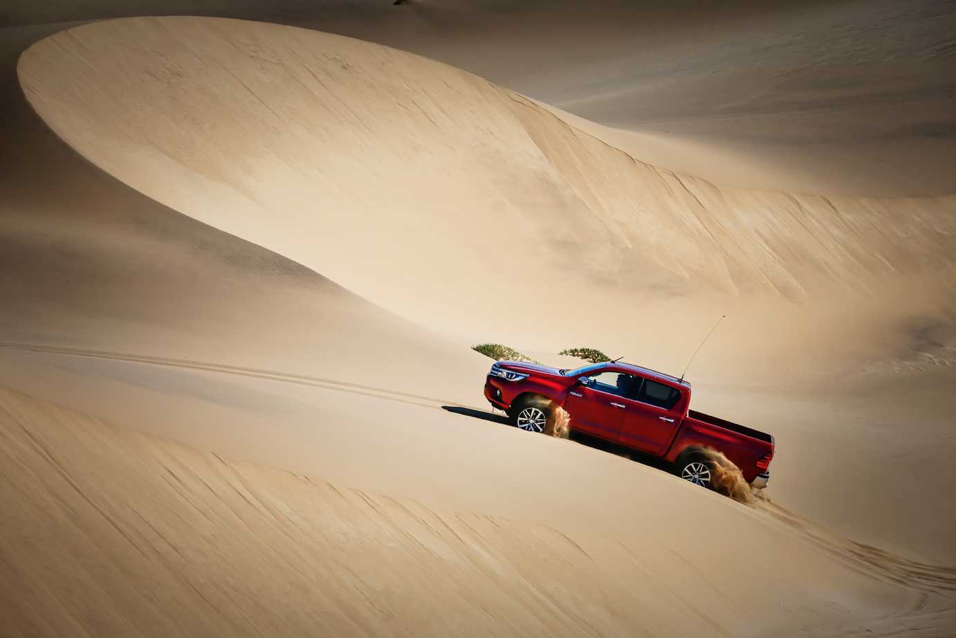 Namibia ist eine der am dünnsten besiedelten Regionen der Welt. Viel Platz für eine faszinierende Tierwelt, betörend-bizarre Landschaften – und den neuen Hilux.